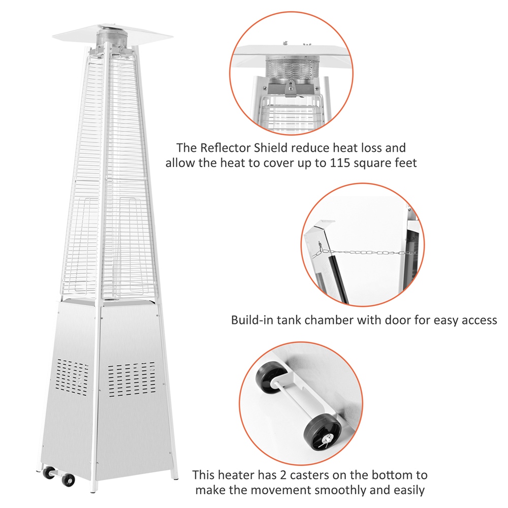 42000 BTU Pyramid Glass Tube Flame Outdoor Heater with Long Strips of Flame with Aluminum Top Reflector Shield Heating Up to 115 Square Feet