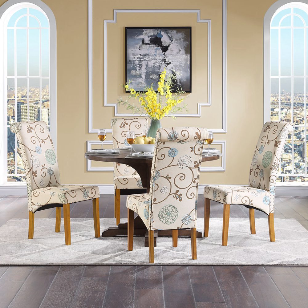 - Please take a note that due to fabric fixed manually, floral texture may not be in the same position for each chair.